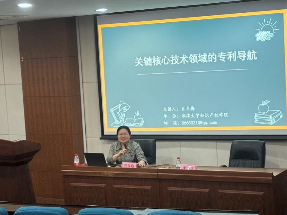 6月23日,湘潭大学知识产权学院院长肖冬梅教授应邀到法学院(知识产权学院),为师生作题为“关键核心技术领域的专利导航”的学术讲座。讲座由院长朱一飞教授主持,学院百余名师生现场参与讲座。