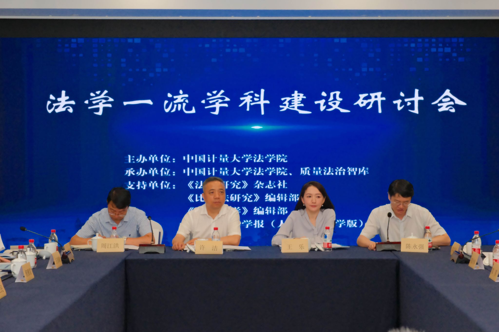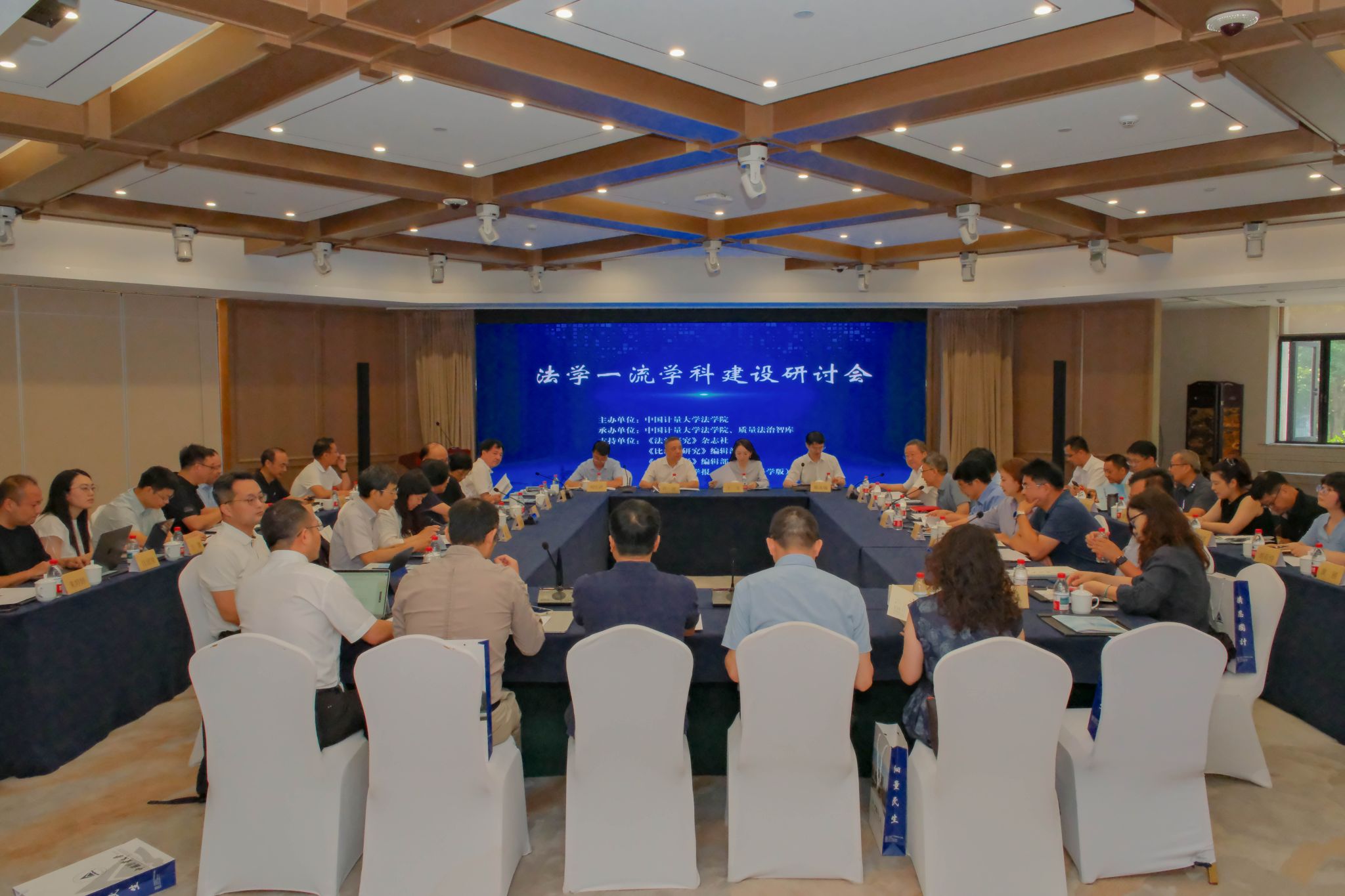 近日,由我校法学院(知识产权学院)举办的法学一流学科建设研讨会在杭州举行。浙江省法学会专职副会长许洁、浙江大学副校长周江洪、中国计量大学副校长王乐出席会议,来自北京大学、浙江大学、复旦大学等知名高校的法学院院(校)长,《政法论坛》《比较法研究》《南大法学》等知名期刊的负责人以及我校发规处、人文社科处、经管学院、法学院负责人50余人参加会议。
