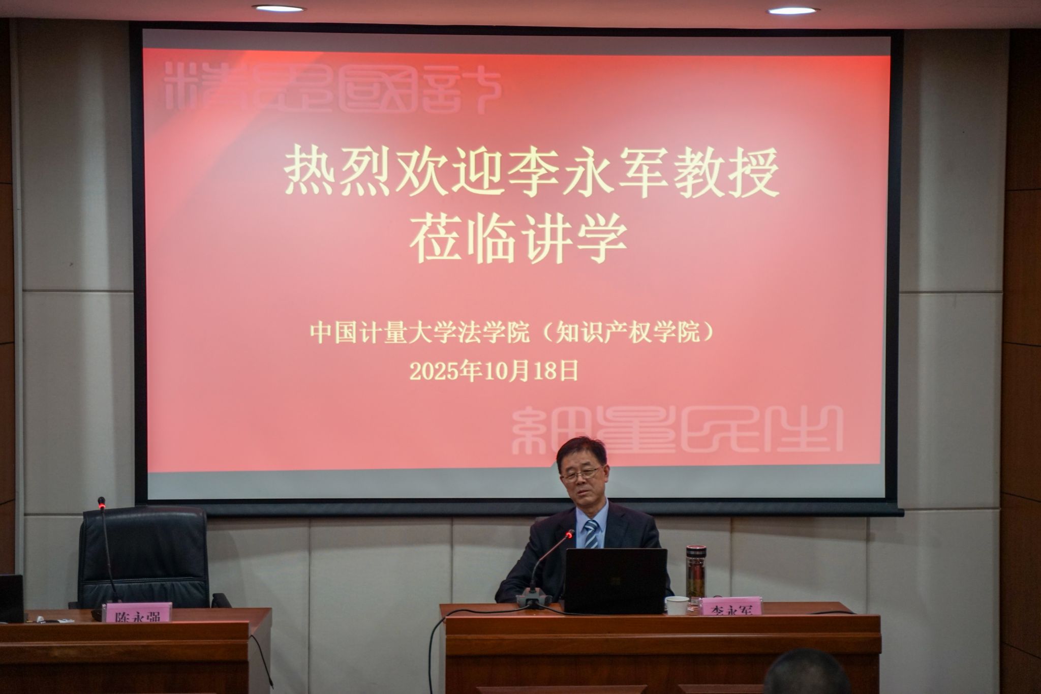 10月18日,中国政法大学民商经济法学院李永军教授应邀到法学院(知识产权学院),为师生作题为“正确认识民法典”的学术讲座。讲座由陈永强教授主持,中国政法大学民商经济法学院席志国教授、我校法学院(知识产权学院)刘斌教授、杭州电子科技大学法学院苏紫衡讲师与谈,百余名师生现场聆听了讲座。