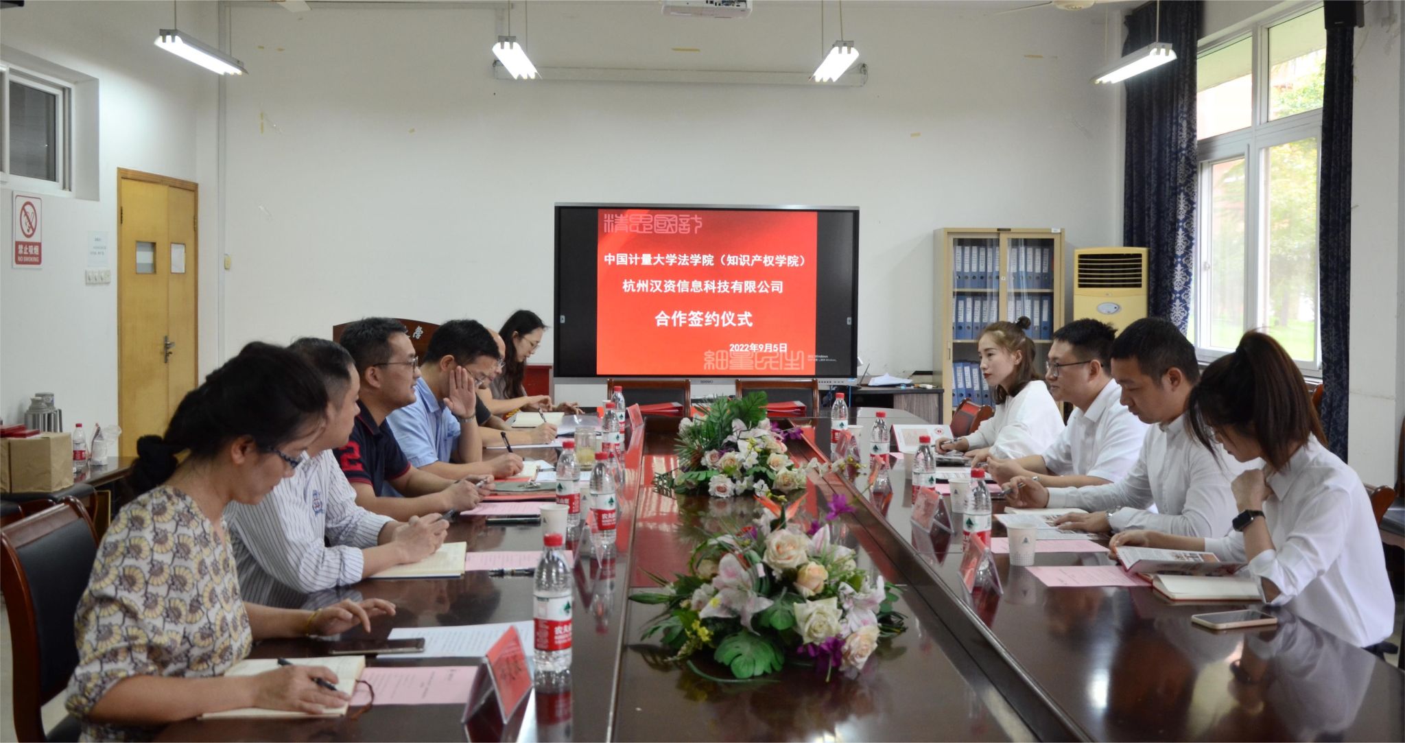 为积极推进产学研融合发展,9月5日下午,法学院(知识产权学院)与杭州汉资信息科技有限公司举行产学研战略合作对接会。法学院(知识产权学院)院长朱一飞、副院长徐楠轩,杭州汉资信息科技有限公司董事长方明等参加会议,会议由学院党委书记张徐兴主持。