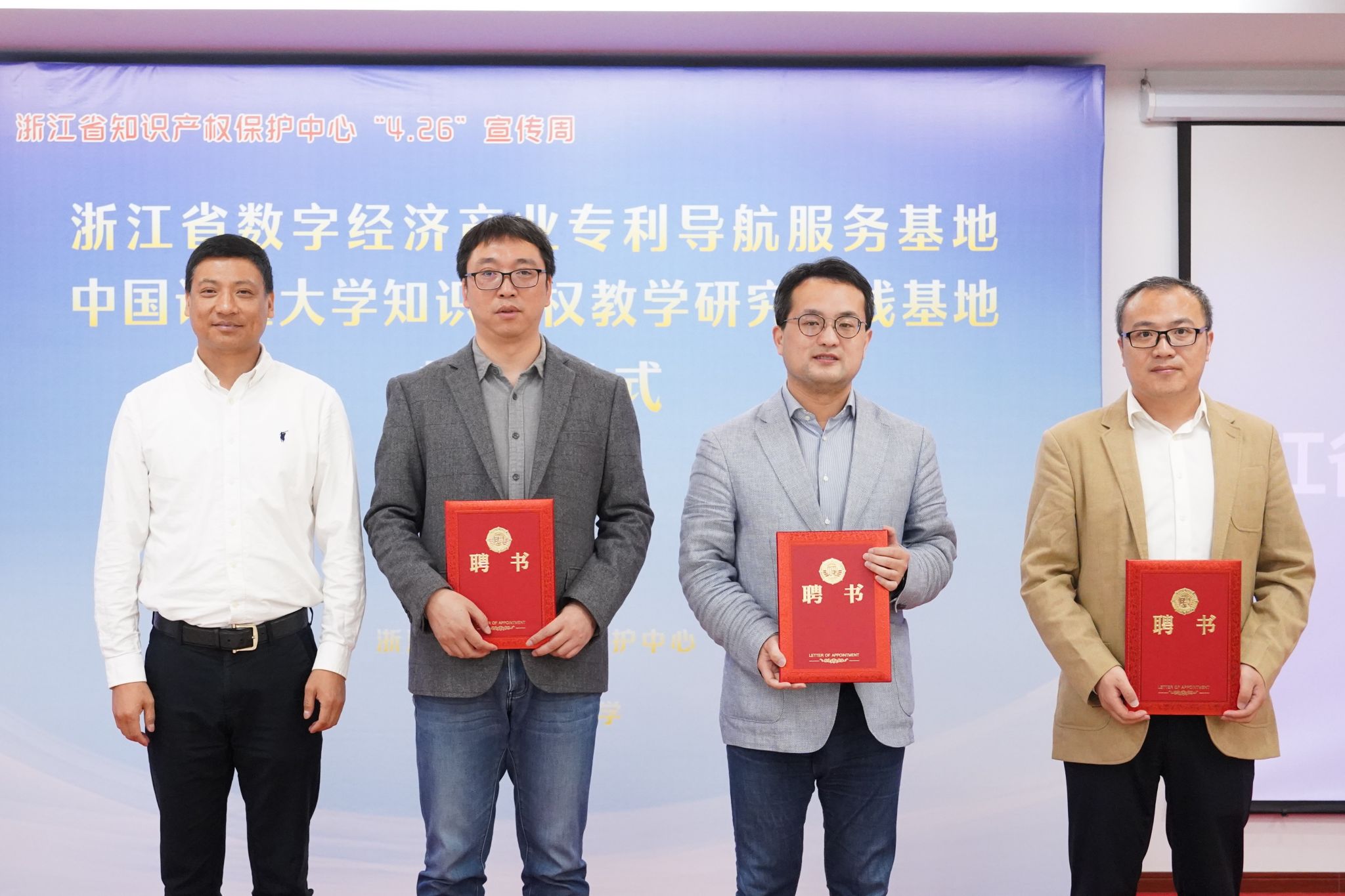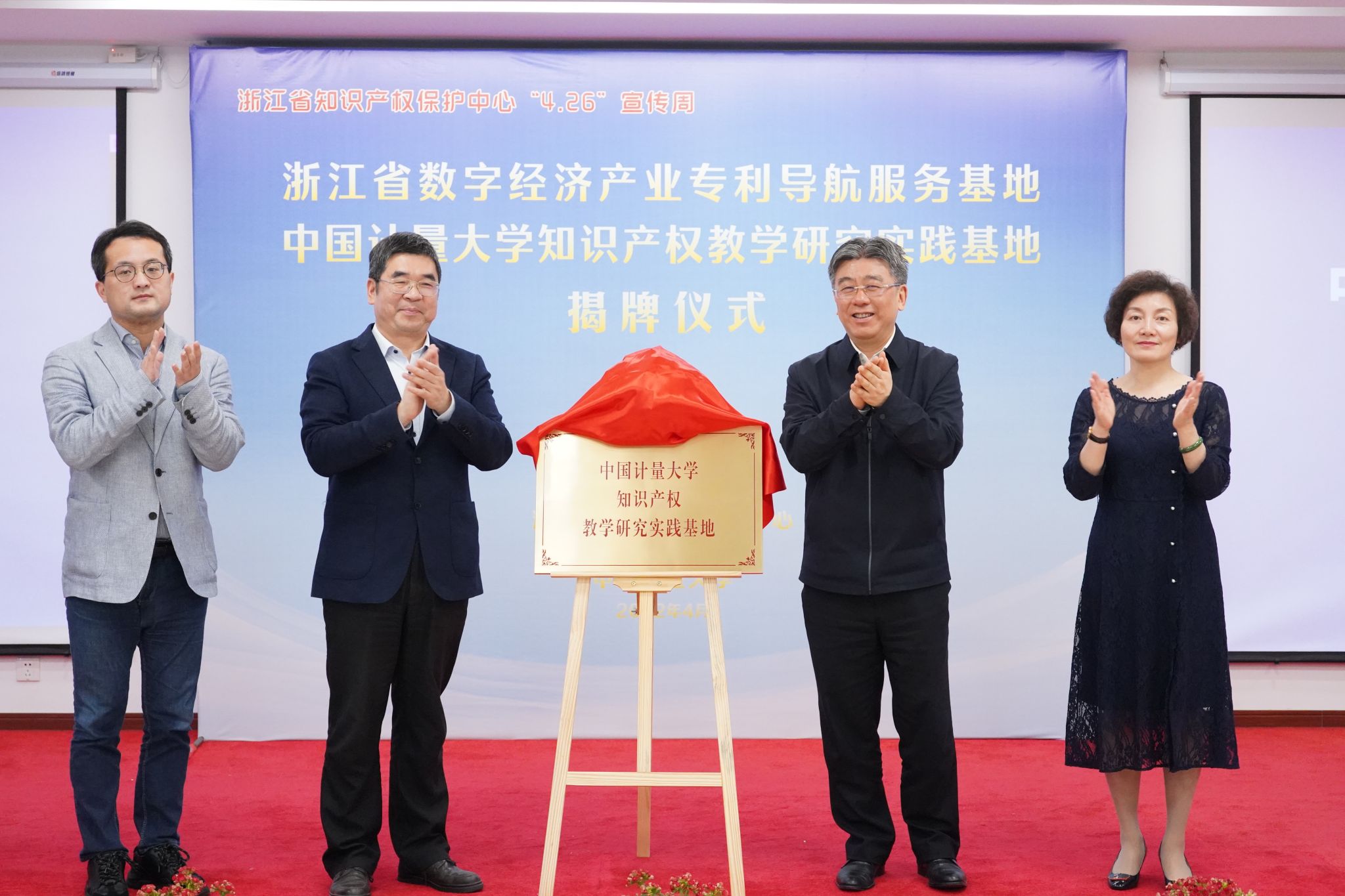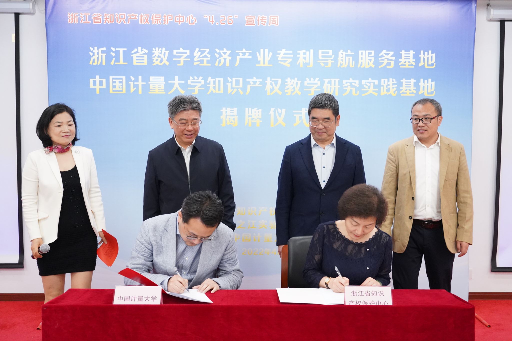 在第22个世界知识产权日到来和2022年全国知识产权宣传活动周启动之际,4月21日,我校与浙江省知识产权保护中心共建知识产权教学研究实践基地,并签署战略合作框架协议。省市场监管局副局长顾文海、我校副校长葛洪良、省知识产权保护中心党委副书记曹辉、省市场监管局知识产权运用促进处处长林敏、我校法学院(知识产权学院)院长朱一飞等出席参加基地揭牌暨签约仪式。