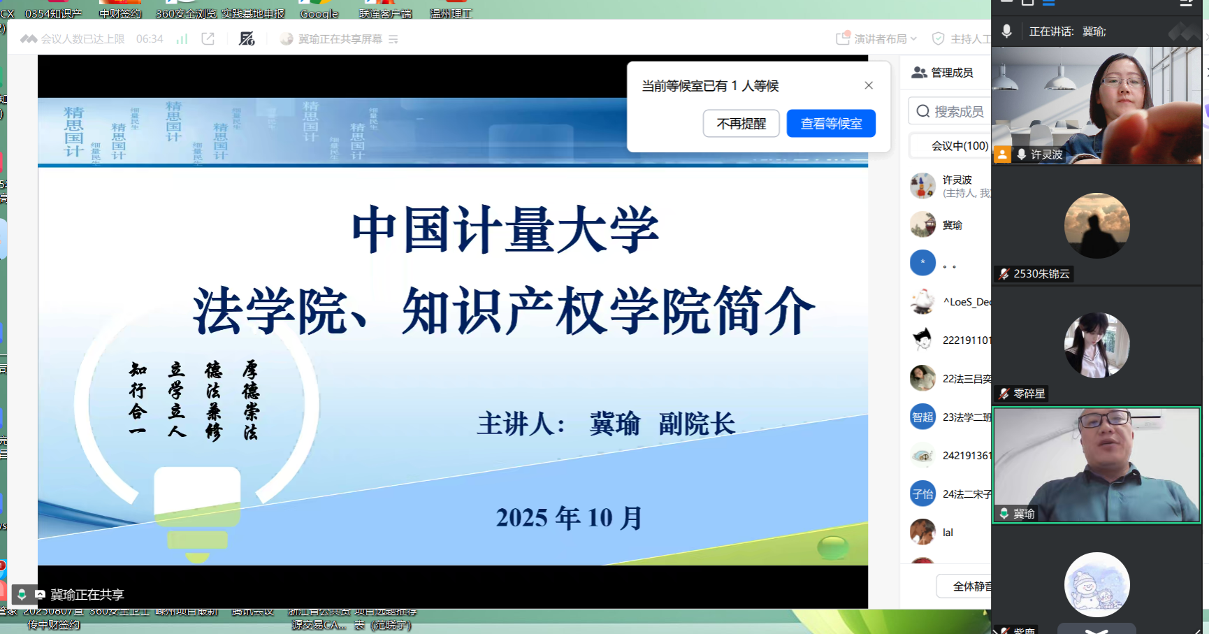 学院还通过承办高水平学术活动、举办学科建设研讨、组织公益宣讲等方式,持续提升学科建设水平和学科声誉。如承办中国知识产权研究会高校知识产权专业委员会“知识产权专业硕士培养”专题研讨会,为全国高校知识产权人才培养搭建交流平台;举办法学一流学科建设研讨会,凝聚学科发展愿景和共识;组织开展2025年度浙江省知识产权保护公益宣讲,推动专业服务与社会需求紧密结合,进一步彰显学院的学科优势与社会责任,为研究生招生宣传奠定良好基础。