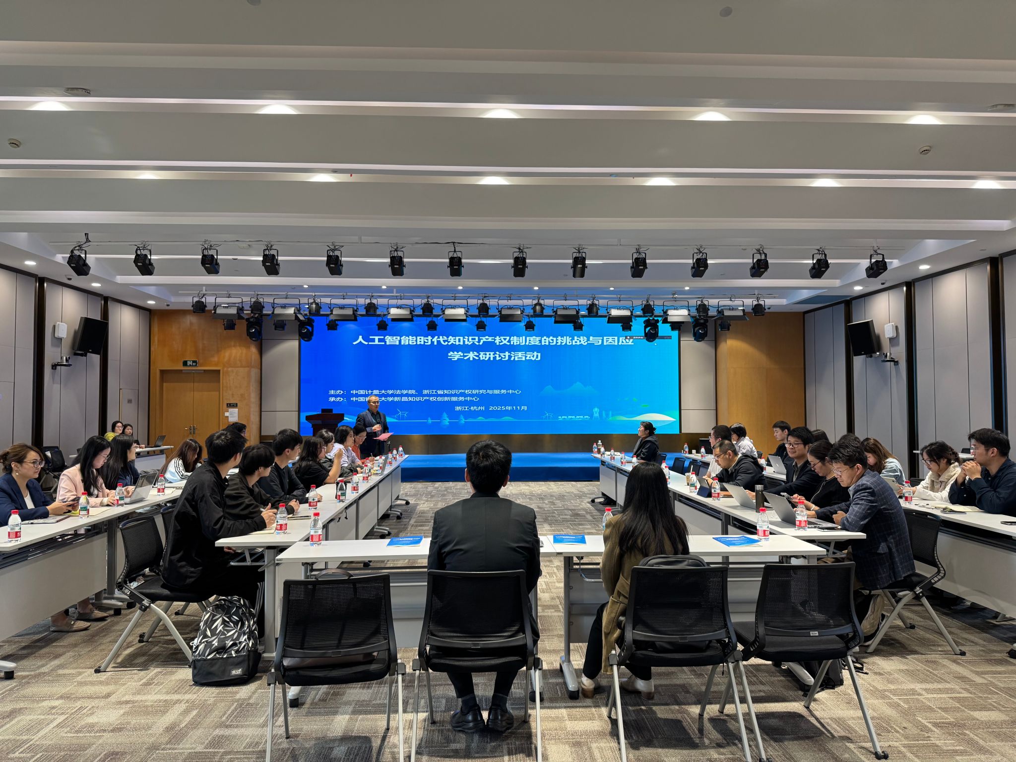 11月10日,由中国计量大学法学院(知识产权学院)、浙江省知识产权研究与服务中心主办,中国计量大学新昌知识产权创新服务中心承办的“2025之江营商论坛”分项活动之一——人工智能时代知识产权制度的挑战与因应学术研讨活动在杭州举行。来自人工智能、知识产权领域的政府部门、学术界、产业界专家学者40余人参加活动,我校首届知识产权专业硕士研究生全程参会。
