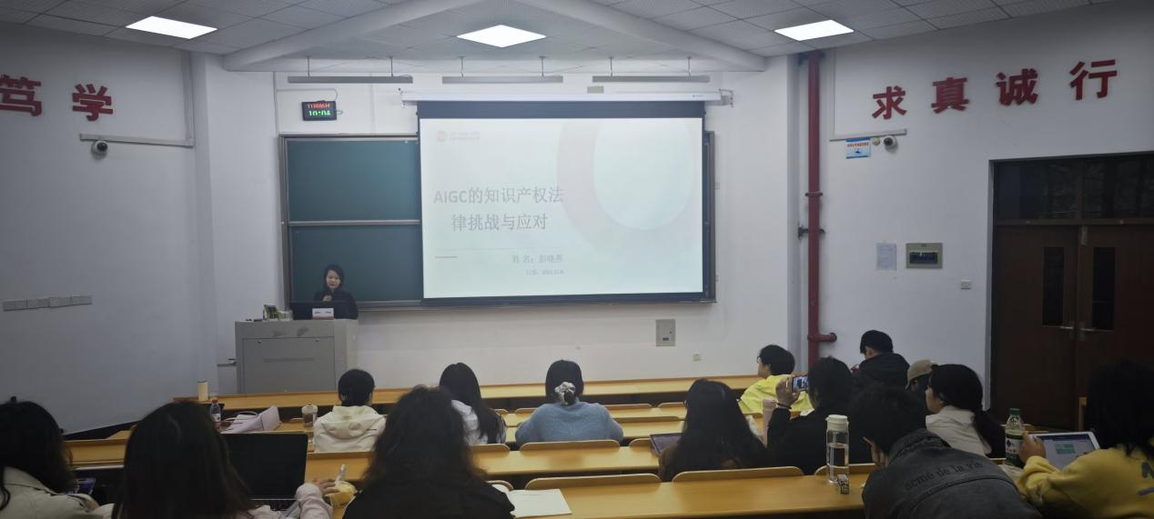 11月6日,法学院(知识产权学院)举办实务导师进课堂系列活动弘德知识产权论坛第二讲:《AIGC时代下的知识产权法律挑战和应对》。北京万商天勤(杭州)律师事务所执行主任彭晓燕律师应邀作主题分享,2025级知识产权硕士研究生参加活动,活动由知识产权系黄丽博士主持。